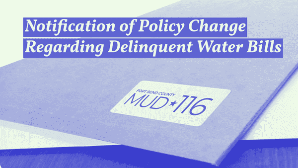 The Board of Directors of Fort Bend County Municipal Utility District 116 (FBCMUD 116) would like to inform residents of an important change in the district’s policy concerning delinquent water bills.